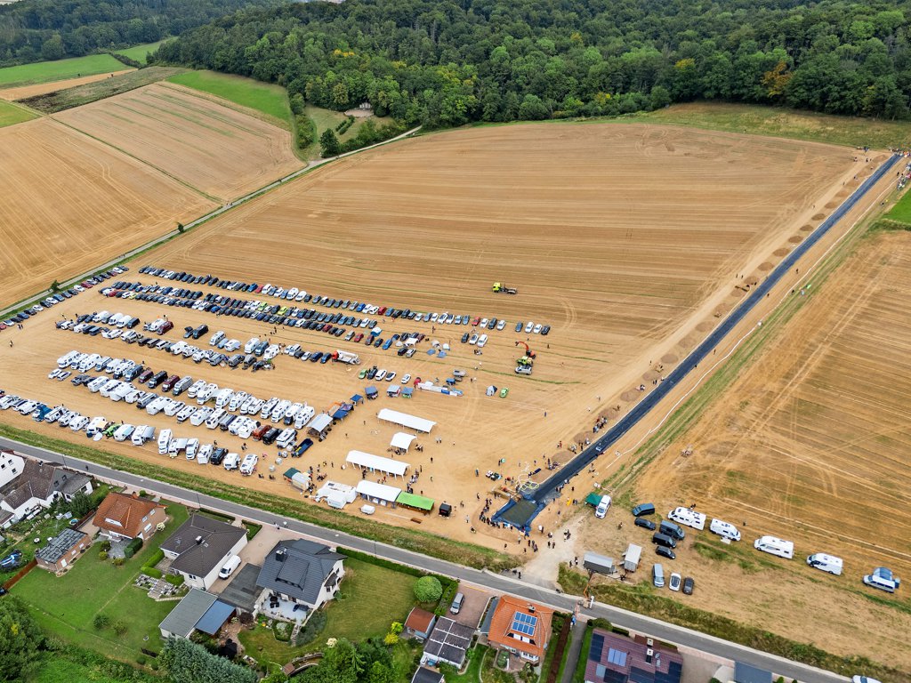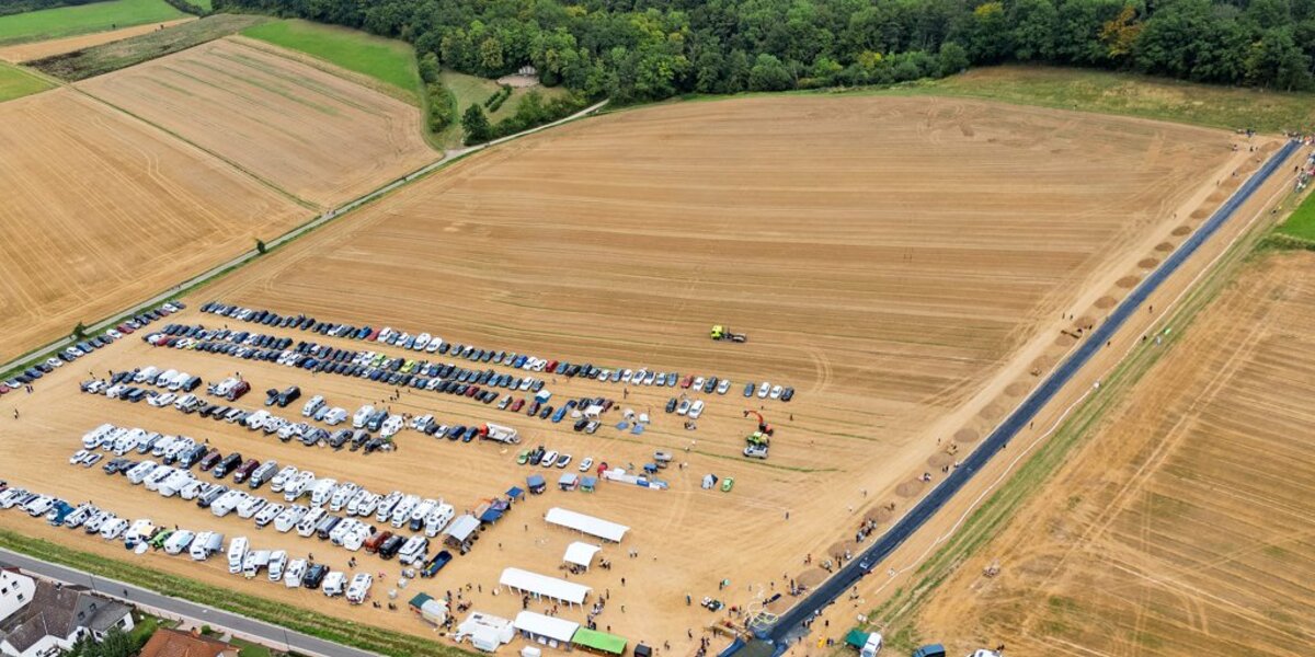 Tatsächlich kommen am Samstag dennoch mehr als 1000 Menschen nach Deinsen. Auf dem zum Parkplatz umfunktionierten Ackerstück finden sich Autokennzeichen aus der ganzen Bundesrepublik und darüber hinaus. Viele sind mit Wohnmobilen gekommen wie die Niederländer, die das ganze Wochenende in der Region verbringen. Auch zahlreiche Zelte stehen auf der Fläche. Dort herrscht Volksfest-Stimmung. Natürlich gibt es Caches zu finden, Interessierte können sich mit einer Hebebühne auf 33 Meter hochfahren lassen, um über das Külftal zu blicken, Anbieter von Geocaching-Produkten haben Stände aufgebaut. Überall tauschen Besucherinnen und Besucher Erfahrungen und Anekdoten aus.