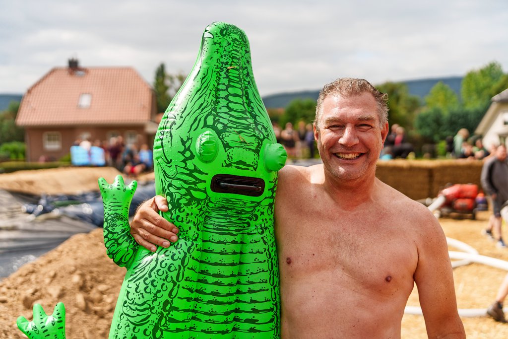 Deinsen - Alex schüttelt immer wieder den Kopf: „Also, unsere Gruppe ist ja seit 18 Jahren in Europa unterwegs“, erzählt der fröhliche Niederländer. „Aber so etwas habe ich noch nie gesehen und noch nie mitgemacht. Großartig.“ Dann klemmt er sich seine Luftmatratze in Krokodilform unter den Arm und stapft wieder den Westhang des Külf hinauf. „Bei uns geht das auch gar nicht, mein Wohnort Lelystad am Ijsselmeer liegt ja sogar unter dem Meeresspiegel“, erzählt er noch. Der nächste Berg, selbst der nächste Hügel ist dort weit weg.