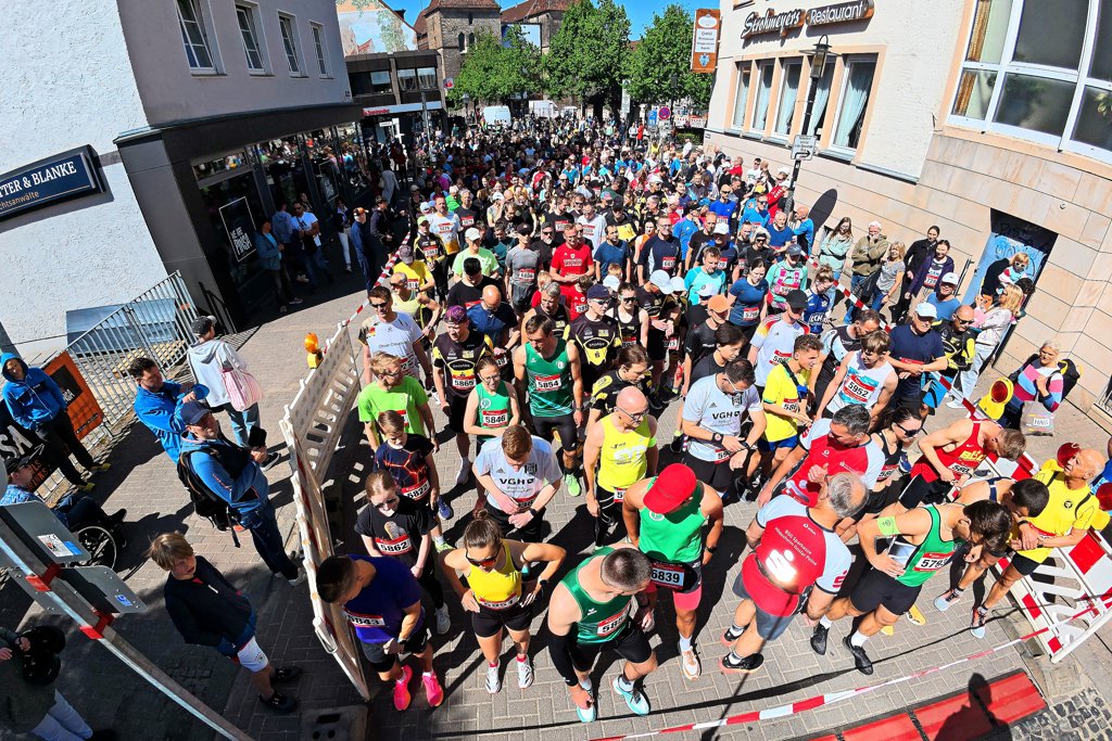 Hildesheims größter Volkslauf erfreut sich weiterhin großer Beliebtheit. Über 1000 Läuferinnen starten in den ersten drei Kategorien, dem Fünf-Kilometer-Schüler, dem offenen Fünf-Kilometer-Lauf und dem Zehn-Kilometer-Lauf. Hinzu kommen zahlreiche Starts am Nachmittag bei den Kinderrennen. Fotos: Werner Kaiser