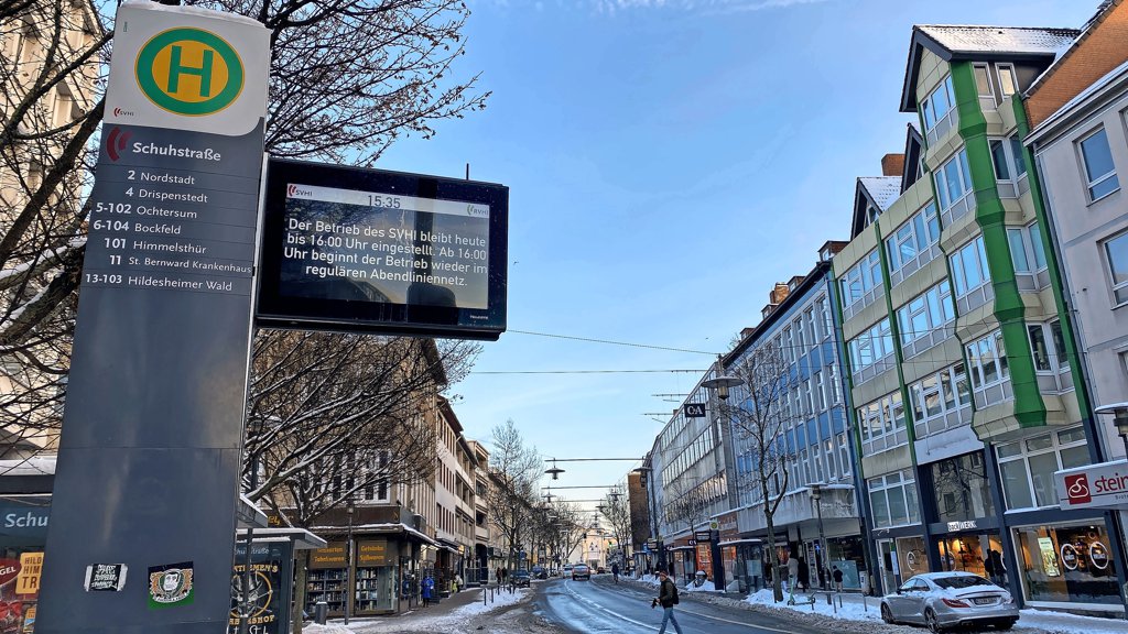 Unterdessen hat der Hildesheimer Stadtverkehr (SVHI) den Betrieb wieder aufgenommen. Ab 16 Uhr begann der Betrieb im regulären Abendliniennetz wieder – nach mehr als 24 Stunden Stillstand. Der SVHI weist allerdings darauf hin, dass es aufgrund der Witterungsbedingungen weiterhin zu Verspätungen, Ausfällen und Einschränkungen kommen kann. Die Busse des Regionalverkehrs RVHI fallen hingegen noch den gesamten Samstag aus.