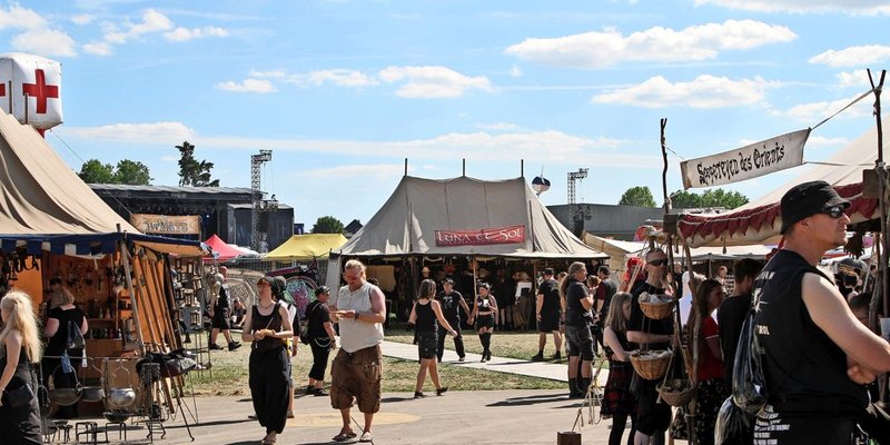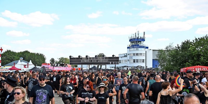 Hildesheim - Das Gothic-Event Mera Luna in Hildesheim hat wieder tausende Besucherinnen und Besucher angelockt, die zu der Musik von Bands wie ASP, Blutengel und Nachtmahr auf dem Flugplatz feiern. Eindrücke vom zweiten Festival-Tag.