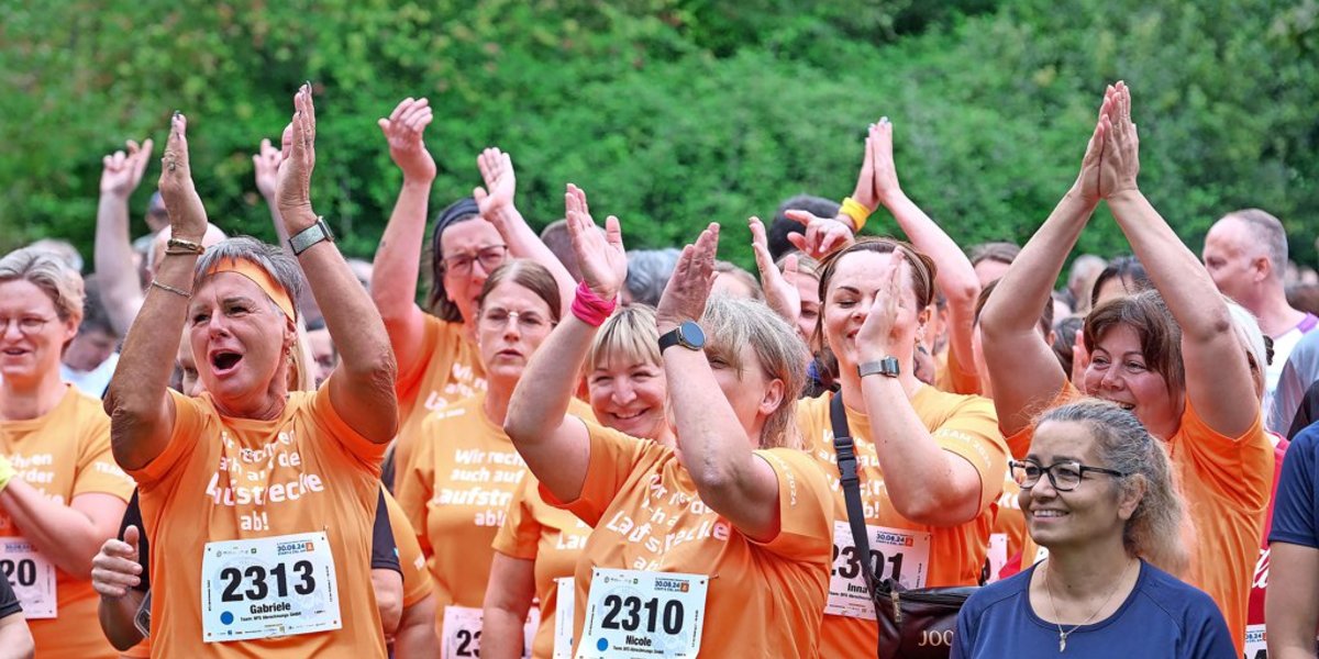 Orange, Gelb, Blau, Rot oder Pink – die verschiedenen Trikotfarben ergeben ein buntes Durcheinander unter einem wolkenverhangenen Himmel. Mindestens sechs verschiedene Grüntöne sind vertreten, und natürlich riecht es in der stetig wachsenden Menge am Ufer des Hohnsensees nach Sportkleidung, Deodorant – und Bananen. Die gibt es neben anderen Erfrischungen und gesunden Snacks am Stand des diesjährigen Medienpartners, dem Medienhaus Gerstenberg.