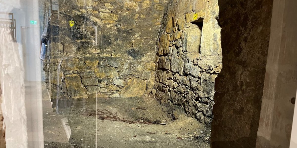 Apropos Untergeschoss: Dort fällt in einer Ecke ein rechteckiges Glasfenster auf. „Das haben wir nach Absprache mit der Stadt eingesetzt,“ erklärt Hockemeyer. Wer dann davor steht, kann nun beim Shoppen auch noch in den Hildesheimer Untergrund schauen. „Vom Gebäude Hoher Weg 29-31 schließt sich im Untergeschoss unmittelbar ein historischer Gewölbekeller an, der seit vielen Jahren nicht zugänglich war“, erklärt Stadtsprecherin Jasmin Weprik. „Unsere Denkmalschützerin hat die Firma SiNN darauf aufmerksam gemacht und sie haben gemeinsam die Öffnung zum Keller freigelegt.“