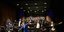 Zunächst sieht es wie ein traditionelles Oratorienkonzert aus: ein Solistenquintett mit Sonja Isabel Reuter-Sopran (Brions Geliebte Judith), Sofia Pavone-Mezzosopran (Brians Mutter Mandy), Julian Rohde-Tenor (Brian), Felix Mischitz Bariton (Pilatus) und Uwe Tobias Hieronimi-Bass (Schwanzugs Longus). Später werden sie noch manche andere Rollen übernehmen. Dazu der von Achim Falkenhausen bestens vorbereitete Chor und das groß besetzte Orchester – das gesamte Ensemble im Frack oder Abendgala gekleidet (Kostüme Anna Siegrot). Und genauso klassisch soll der Abend auch mit einer Ouvertüre beginnen. Aber daraus wird nichts. In den Auftakt des Dirigenten Sergei Kiselev stolpert der großartig agierende Jan Kämmerer in der Rolle der Transe Betty Parkinson herein und übernimmt die Führung. Den ganzen Abend ist er/sie moderierend, kommentierend, lamentierend und ironisierend zwischen den Musiknummern in Aktion. Ein Kabinettstück an komödiantischer Kunst. Dem stehen die anderen in nichts nach. Mal singen sie Ensembles im Barockstil, dann wieder schmelzende Musicalmelodien, dann wieder Folklore und kurz danach groovende Gospelklänge. Und der Orchesterklang schlägt einen weiten Bogen von barockisierender Instrumentierung über süffige Filmmusik-Anmutungen bis zu fetzigem Bigbandsound. Ein herrlicher Stil-Misch-Masch ist das. Dabei wird von allen stets auf bestem Niveau gesungen und gespielt. Und die Tontechnik liefert einen differenziert abgestimmten Klang.
