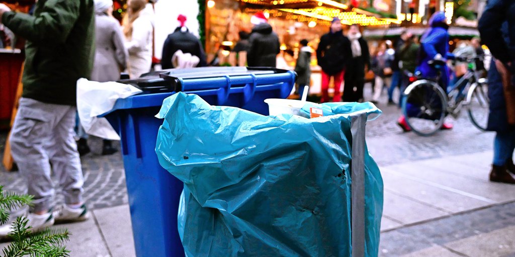 Hildesheim - Wo Menschen feiern, da entsteht oft eine Menge Müll. Auf dem Weihnachtsmarkt gibt es dafür verschiedene Eimer und Tonnen, doch einige davon sind derzeit zugeklebt. Was es damit auf sich hat – und was sich grundsätzlich ändern soll.