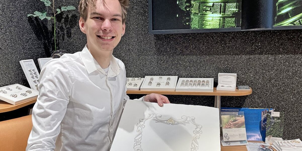 Und tatsächlich gewinnt er damit den ersten Platz, am Stephanientag, dem 5. Mai, soll er zur Ehrung 2000 Euro erhalten. Prade hofft, dass die Goldschmiede Maertens auch den Auftrag erhält, den Entwurf zu verwirklichen – die Entscheidung darüber steht allerdings noch aus.