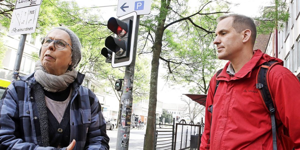 Den Preis dafür zahlen die Fußgänger, die von der Schuhstraße über die Wollenweberstraße zum PvH wollen: Sie hatten bis dato teilweise bis zu 30 Sekunden grün, nun sind es nur noch 18 Sekunden. Der Nachteil hält sich allerdings in Grenzen. Denn die Fußgängerampel von der Friesenstraße zum PvH, die nur ein paar Meter weiter südlich liegt, schaltet jetzt doppelt so oft auf grünes Licht wie vorher.