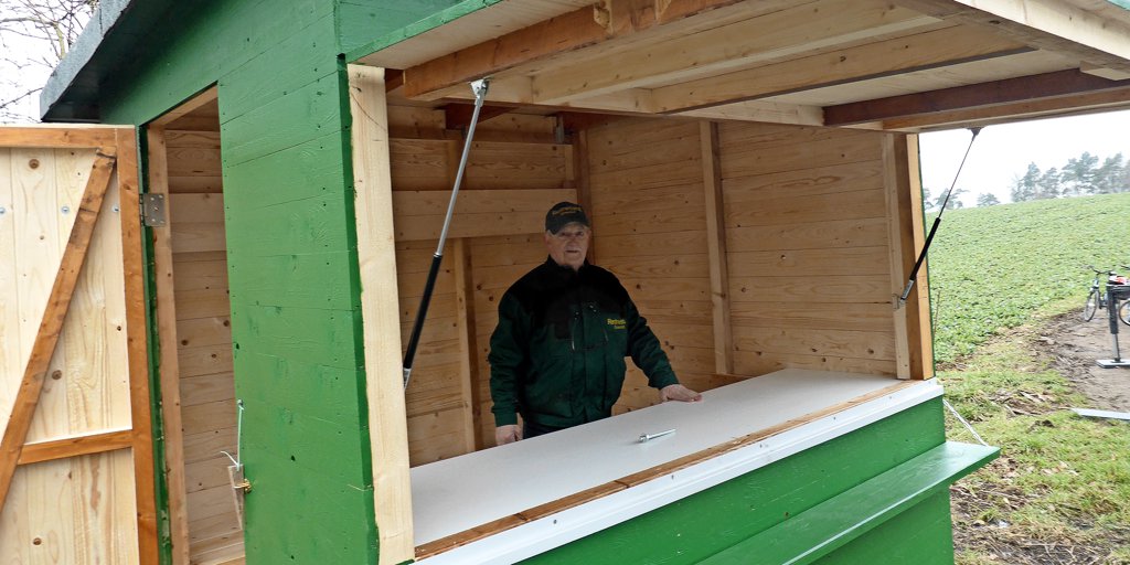 Astenbeck - Der Grasdorfer Kurt Ewert kann sich auf seine Freunde verlassen. In einer gemeinsamen Aktion bauten sie eine neue Verkaufsbude und stellten die nun auf dem Parkplatz bei Astenbeck auf. Wann der Verkauf wieder beginnt.