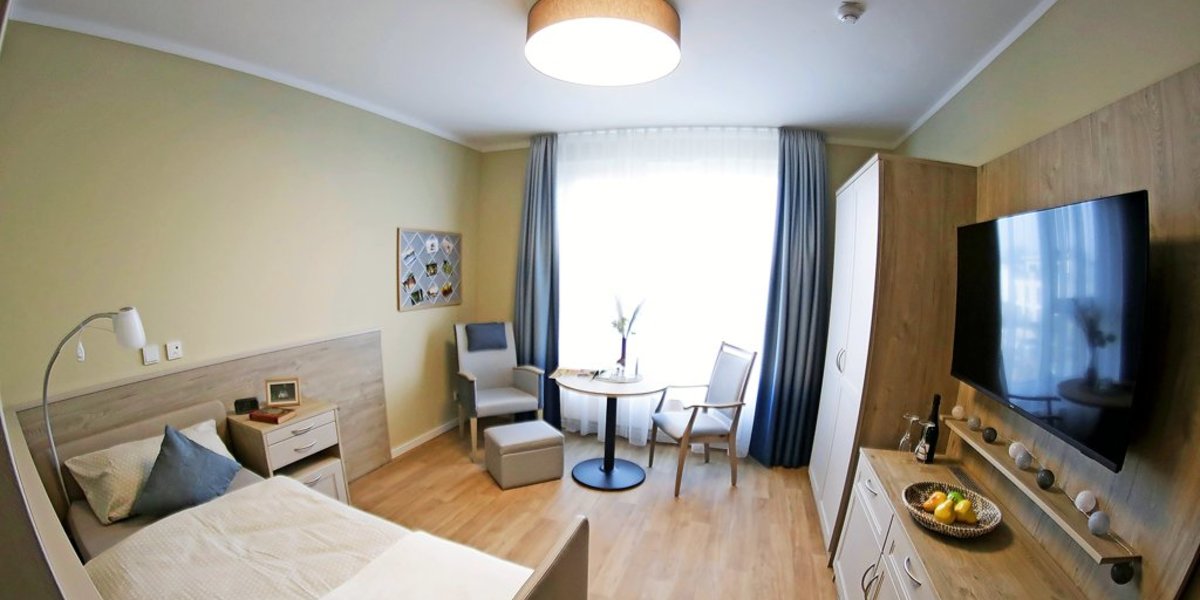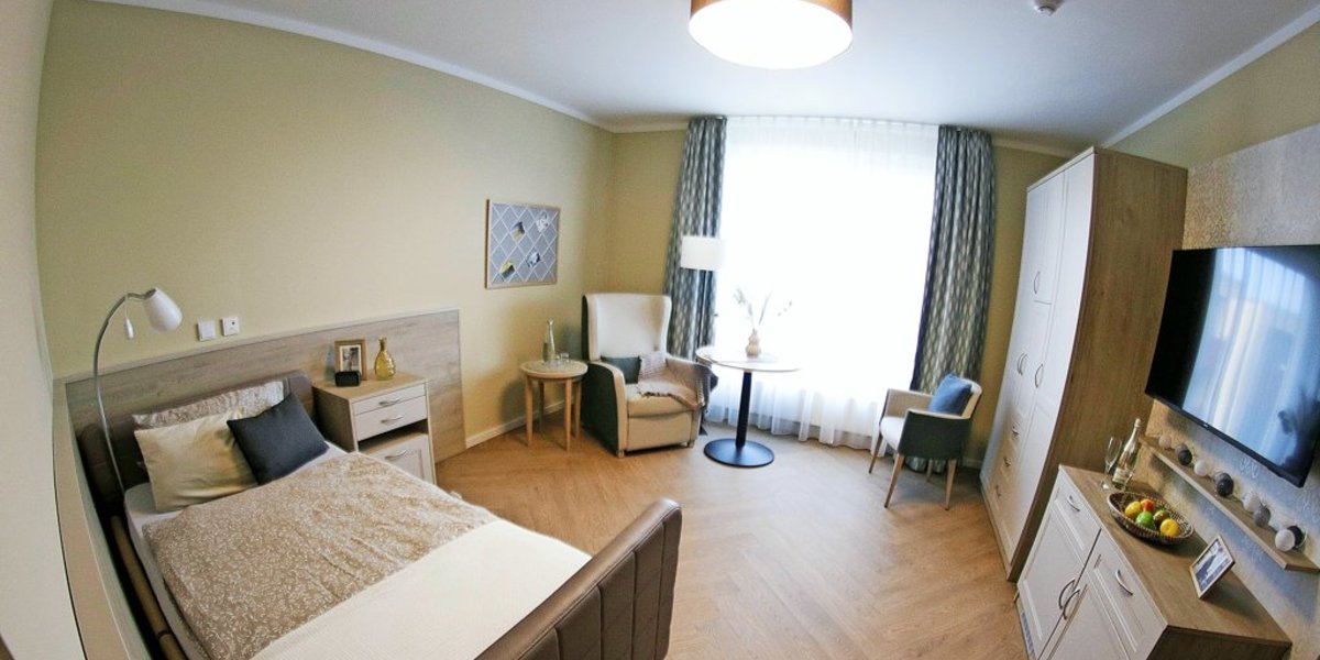 Im Premium-Zimmer, der höchsten Klasse der Seniorenresidenz, gibt es dagegen einen elektrischen Sessel mit hochfahrbahrer Fußablage, ein breiteres Bett, einen größeren Kleiderschrank und Fotowände, an denen Bilder der Liebsten befestigt werden können.