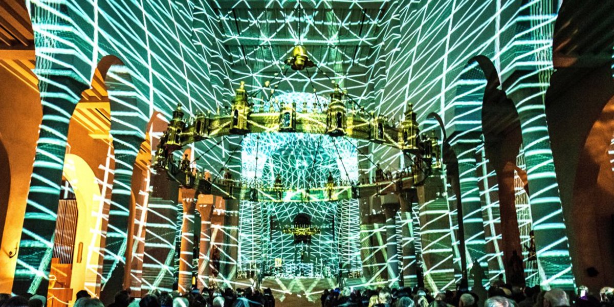 Auf der Achse zwischen Bischofsmühle und Bohlweg liegt der illuminierte Waisenhaus-Garten (hinter Schlegels Weinstuben), vor allem aber der Dom. ZHier wirft Laurenz Theinert sein Visual Piano an. Damit steuert er acht Beamer, die den gesamten Raum in eine Kathedrale aus fließendem Licht verwandeln. Zur Orgelmusik von Domkantor Michael Culo schafft er psychedelisch pulsierende Muster. So hat man den Dom noch nie gesehen – was für ein Erlebnis! Zugleich ist es auch ein Publikumsmagnet: Schon vor der ersten Performance gibt es eine lange Warteschlange, und viele werden nicht mehr eingelassen. „Nur“ 600 Menschen pro Konzert sind erlaubt.