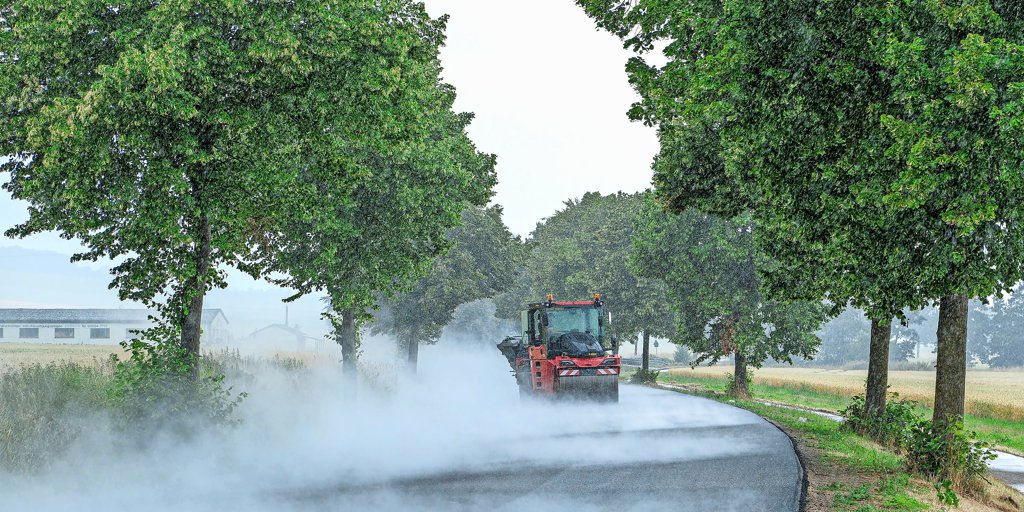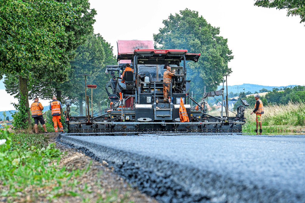 Kreis Hildesheim - Im Schritttempo bewegt sich die mächtige Baumaschine zwischen Egenstedt und Groß Düngen über die Bundesstraße. Über die gesamte Fahrbahnbreite verteilt der sogenannte Fertiger hinter sich ganz gleichmäßig heißes Bitumen. Aus dem wird die neue Fahrbahndecke. Drei Walzenfahrzeuge sorgen sofort dafür, dass die Schicht, verdichtet und geglättet wird. Ein weiteres Fahrzeug streut noch großflächig eine dünne Schicht Splitt auf, damit die Fahrzeuge auf der frisch sanierten Straße später nicht ins Rutschen kommen. Die Arbeiten auf diesem Abschnitt der Bundesstraße 243 neigen sich dem Ende zu. Doch die Zeit der Straßensperrungen und Umleitungen nicht. Denn: Die nächsten Bauabschnitte schließen sich nahtlos an und werden sich noch über mehrere Wochen ziehen.