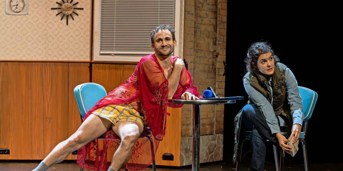 Tatsächlich! Schon um zu sehen, wie oft die Ensemble-Mitglieder von der Bühne abgehen, um Sekunden später in einem anderen Kostüm zurückzukehren, würde sich ein Besuch lohnen. Das Gemeindeleben von Punxsutawney, einer Kleinstadt im tiefen Westen des US-Bundestaats Pennsylvania, bringen die zehn Schauspielerinnen und Schauspieler nach Hildesheim – inklusive Blaskapelle, Gesundheitswesen und Polizeikräften (Kostüme: Sybille Gänßlen-Zeit). Das Bühnenbild (Felix Wienbürger) besteht dafür lediglich aus fünf Boxen auf Rollen. Daraus entstehen Hotelzimmer, Kneipen und sogar ein Karussell. Dazu kommen immer wieder Kleinigkeiten: Ein Schneesturm pustet aus einem Haartrockner und für die Anreise nach Punxsutawney rollt ein Spielzeugauto über die Bühne. Aber, Moment, Punxsutawasjetztbitte?