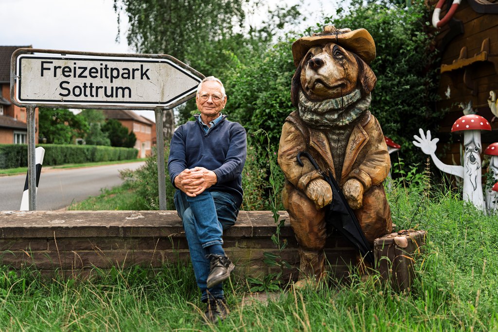Neben dem Bauernhof, für den Deickes damals 90-jährige Mutter Magdalene am Eingang 50 Pfennig kassiert, legt der Unternehmer Wohnwagenstellplätze an. Er richtet einen Ungeziefer-Zoo ein, durch ein Rohr, das in der Erde steckt, können die Gäste sehen, was ein Maulwurf beim Graben sieht – nichts. Aus altem Kleiderschrankholz zimmert Deicke das Meerschweinchen-Dorf, das noch heute am Eingang seinen Platz hat. „Gleich im ersten Jahr 1989 war das Norddeutsche Fernsehen hier, und es hieß: Wenn dies kein Paradies für Kinder ist, dann gibt es keines auf der Welt“, erinnert sich Deicke. Mit seiner zweiten Frau Christa und seinem dritten Kind Sonja, 1988 geboren, zieht Deicke in ein – heute würde man Tiny-House sagen – Häuschen mit 36 Quadratmetern auf dem Gelände. Jede Mark, später jeden Euro, investiert er in seine Pläne. Deicke legt sein Bein auf den Tisch und tippt auf den schwarzen Schnürschuh: „Ich besitze nur ein paar Schuhe, habe kein Auto, keinen Fernseher oder Computer. Wir essen und leben sehr einfach“, sagt er. 15 feste Mitarbeiter, darunter ganz besondere Holzkünstler, sorgen dafür, dass Deickes Pläne Gestalt annehmen. Ob es der Hund am Eingang ist, Baumhäuser, die Villa Kunterbunt oder das Zwergenbergwerk.