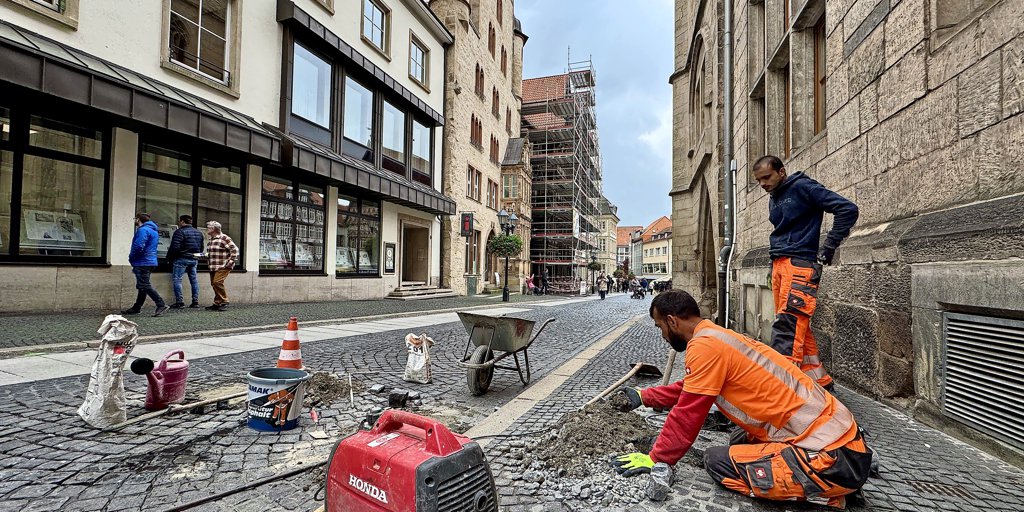 Hildesheim - Mitarbeiter einer Baufirma schaffen derzeit in der Rathausstraße die Voraussetzungen…