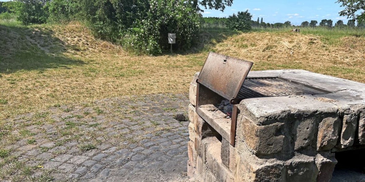 Nun haben Sie zwei Grillstationen zur Auswahl. Entweder Sie biegen nach rechts Richtung Segelclub ab und sehen in kaum 50 Metern auf der linken Seite eine abgegrenzte Wiese mit einem fest installierten Grill.