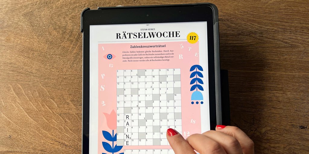 Hier kommen Rätsel-Freunde voll und ganz auf ihre Kosten – und das jederzeit und überall. Jede Woche wartet ein prall gefülltes Heft voller Sudoku, Schwedenrätsel, Quizfragen und anderer Knobeleien auf Sie – direkt in der App oder auf der Webseite. 17 Seiten Rätselspaß für zwischendurch, ob beim Frühstück, auf dem Sofa oder unterwegs. Das digitale Rätselheft ist automatisch in Ihrem Abo enthalten.