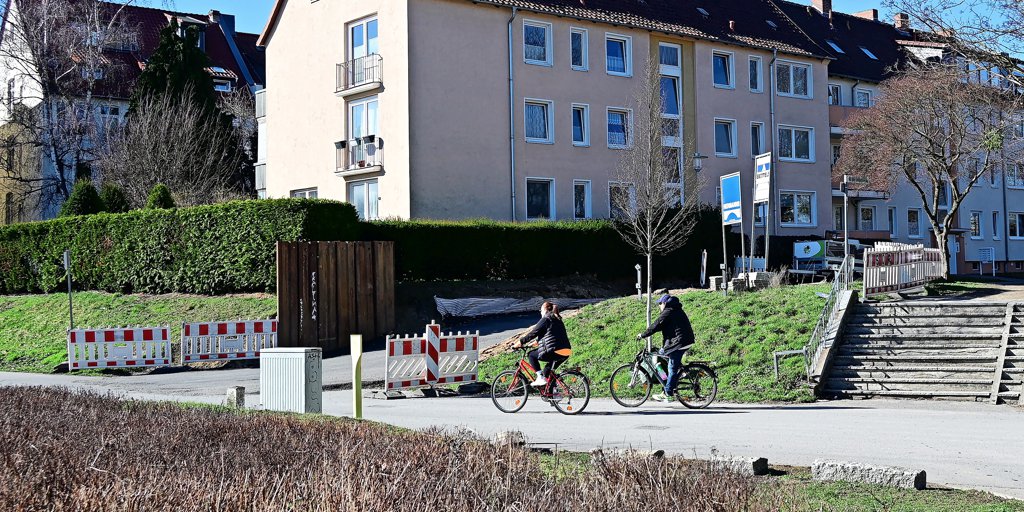 Hildesheim - Der Bau einer Rampe für Radfahrer und Fußgänger am Übergang der Straße An der…