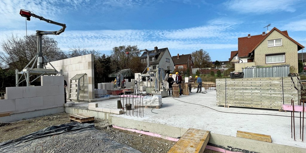 Heersum - Am Montag ist die Bodenplatte gegossen worden, wenige Tage später stehen schon die…