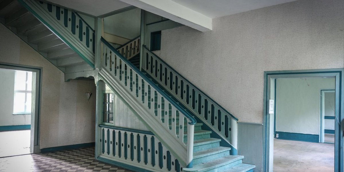 Düsternis atmet das Herrenhaus bis heute. Über Holztreppen geht es immer höher in die Stockwerke des Anwesens mit seinen mehr als 20 Zimmern. Kleine und große sind es.
