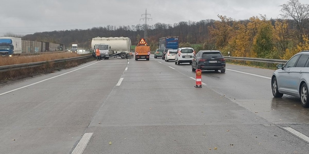 Die Autobahn war nach dem Unfall zunächst rund eine halbe Stunde lang voll gesperrt. „Wir mussten uns erst einmal einen Überblick verschaffen und unter anderem klären, ob in dem Silo-Anhänger womöglich Gefahrgut transportiert wurde“, erklärt Laaser. Doch das war nicht der Fall, der Anhänger war leer. Der Kipper und der Anhänger wurden abgeschleppt. Nach der Vollsperrung fließt der Verkehr derzeit einspurig an der Unfallstelle vorbei, ehe die Fahrbahn wieder komplett freigegeben werden konnte. Es kommt zu einem etwas größeren Lastwagen-Stau, Autofahrer und Autofahrerinnen können die Unfallstelle allerdings recht zügig passieren.