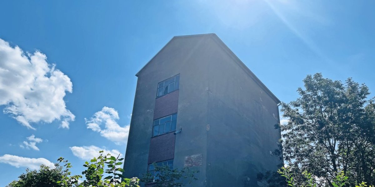 Eine 20 Meter hohe Ruine am nördlichen Dorfrand. Nur der Kirchturm ist hier noch höher. Der graue Putz am Silo ist verwittert, Fensterscheiben sind zerschlagen, Grün wuchert rings um den hohen Turm – ein abgestelltes Schrottauto auf dem Gelände lässt sich kaum noch ausmachen. Am Aufgang türmt sich Müll.