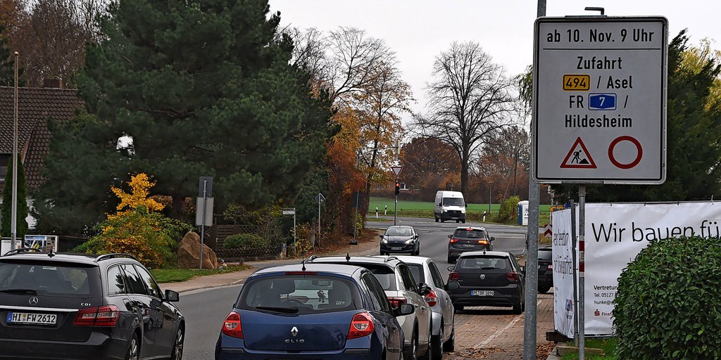 Offizielles Schild kündigt Sperrung auf B494-Zufahrt im Kreis Hildesheim an – doch die gibt es gar nicht