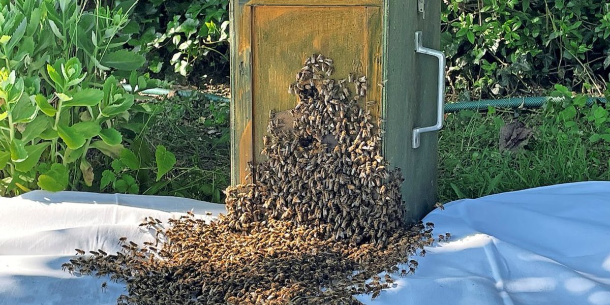 Spurbienen sind im Volk dafür zuständig, eine gute Bleibe für das neue Volk auszukundschaften. Um das Volk zu überzeugen, dass der gewählte Platz ideal ist, schwirren die einzelnen Tiere. Ob sie sich dort niederlassen, entscheidet dann die Mehrheit. „Das ist eine sehr demokratische Entscheidung“, erklärt der Imker. Offenbar haben einige Spurbienen mit dem Standort im Spilkerschen Garten den Geschmack der anderen getroffen.