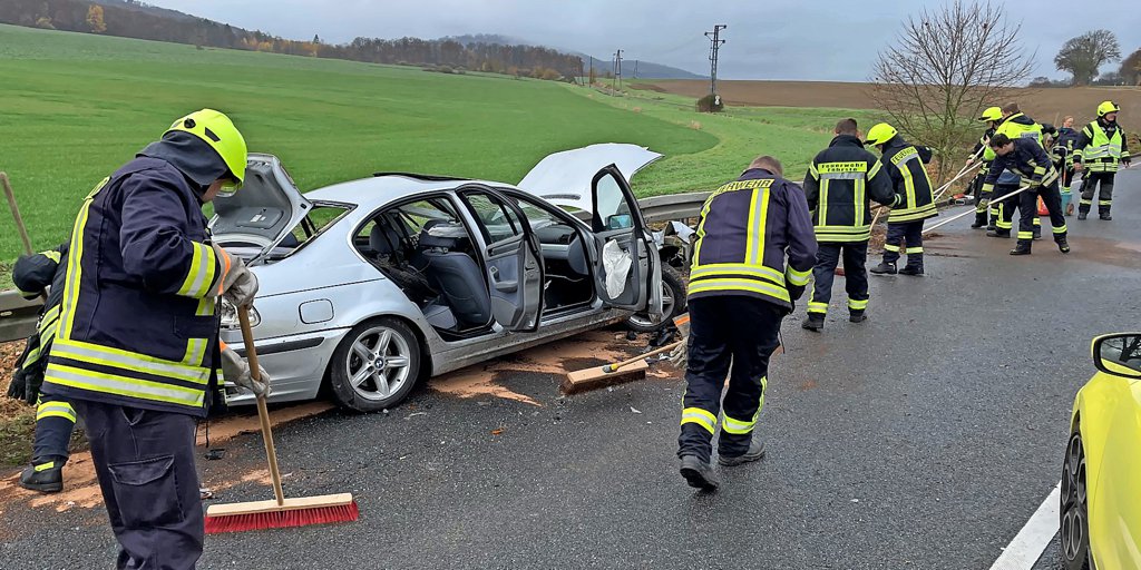 Rettungshubschrauber im Einsatz: Zwei Verletzte nach schwerem Unfall auf Bundesstraße 3 bei Alfeld