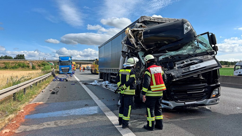 Ein nachfolgender Lastwagenfahrer steuerte seinen Transporter allerdings nicht auf der Fahrbahn an dem gestoppten Gespann vorbei, sondern fuhr aus noch ungeklärter Ursache auf den Standstreifen und prallte mit der Front in den Auflieger des Pannen-Lastwagens. Nach Meldungen von Einsatzkräften vor Ort soll sich die Frontpartie nahezu komplett in den Anhänger gebohrt haben. Der Fahrer des Lastwagens ist dabei leicht verletzt worden. „Er hat wohl sehr großes Glück gehabt, dass es für ihn nicht schlimmer ausgegangen ist“, sagt Möller.