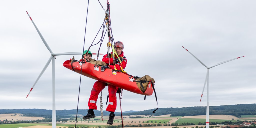 So befreien Höhenretter der Feuerwehr Hildesheim Verletzte aus einem 169 Meter hohen Windrad