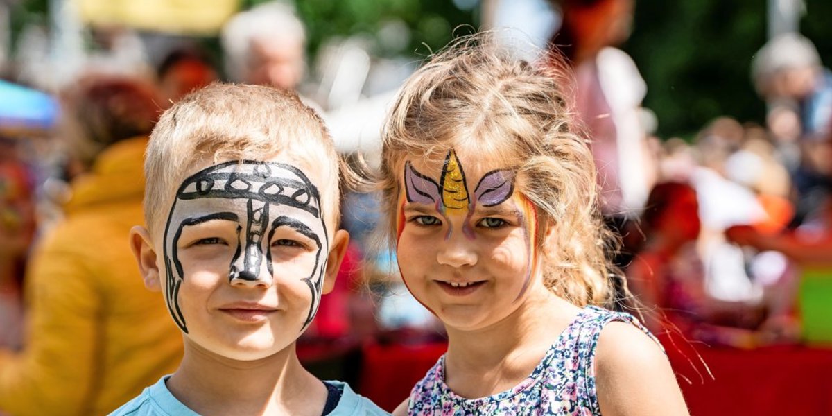 Senioren sitzen im AWO-Kuchenzelt beieinander. Kinder haben so viel Schokoeis auf den T-Shirts wie Schminke im Gesicht. Denn für sie gibt es ganz besondere Angebote: Neben dem Kinderschminken stehen zwei große Hüpfburgen bereit, die an den drei Festivaltagen fast durchgängig gut besucht sind.