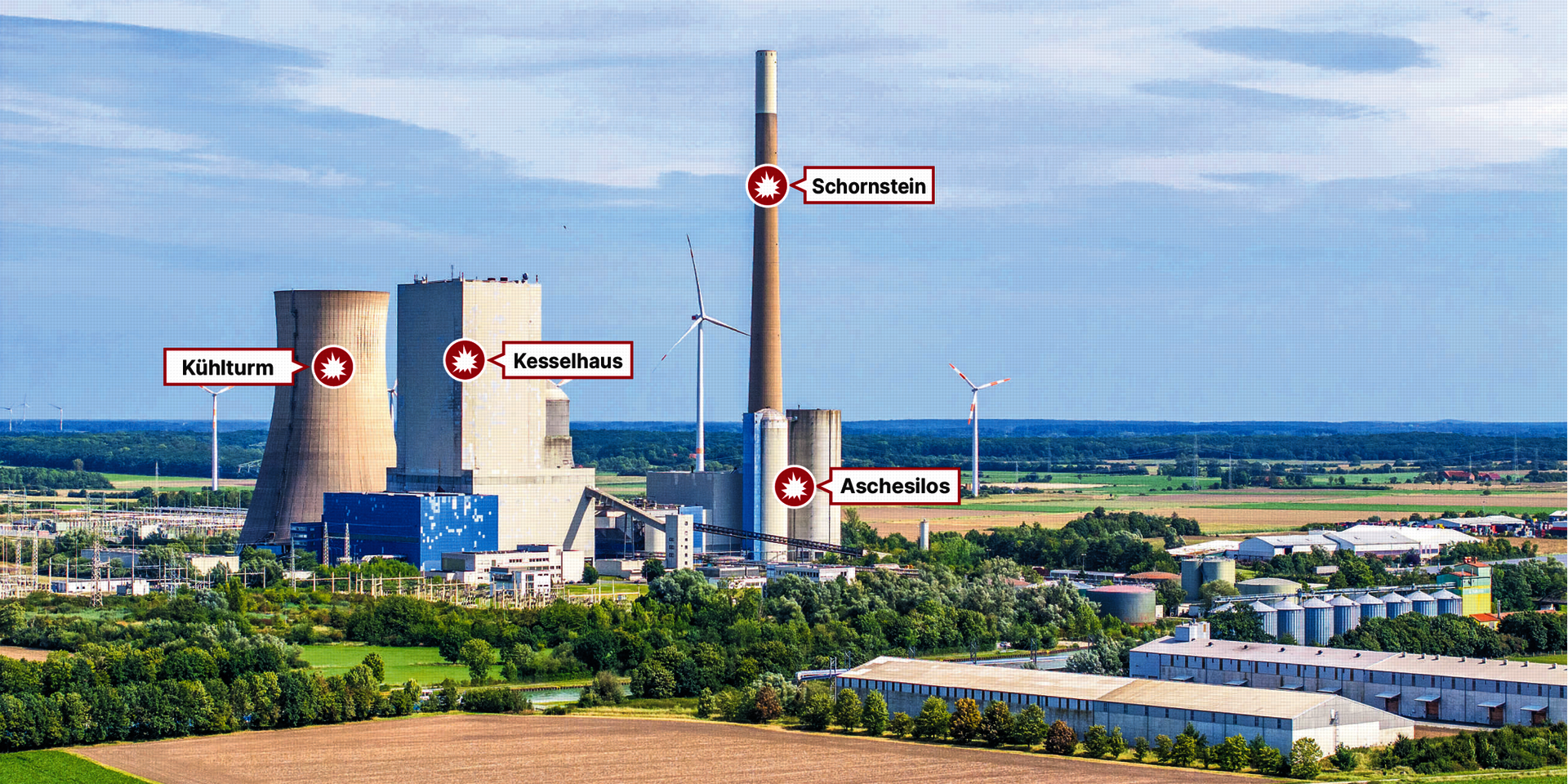 Mit der nun „verkleinert“ vorgesehenen Sprengung wollen die Planer auch mit Blick auf die vom Kraftwerk etwa 200 Meter entfernten zwei Umspannwerke auf „Nummer sicher“ gehen. Die sind laut Netzbetreiber Tennet Dreh- und Angelpunkt der regionalen und überregionalen Stromversorgung. Dort laufen zahlreiche Hoch- und Höchstspannungsleitungen zusammen. Durch die in verschiedene Schritte unterteilten Sprengungen sollen auch sehr unwahrscheinliche Störungen ausgeschlossen werden, so Fieber.