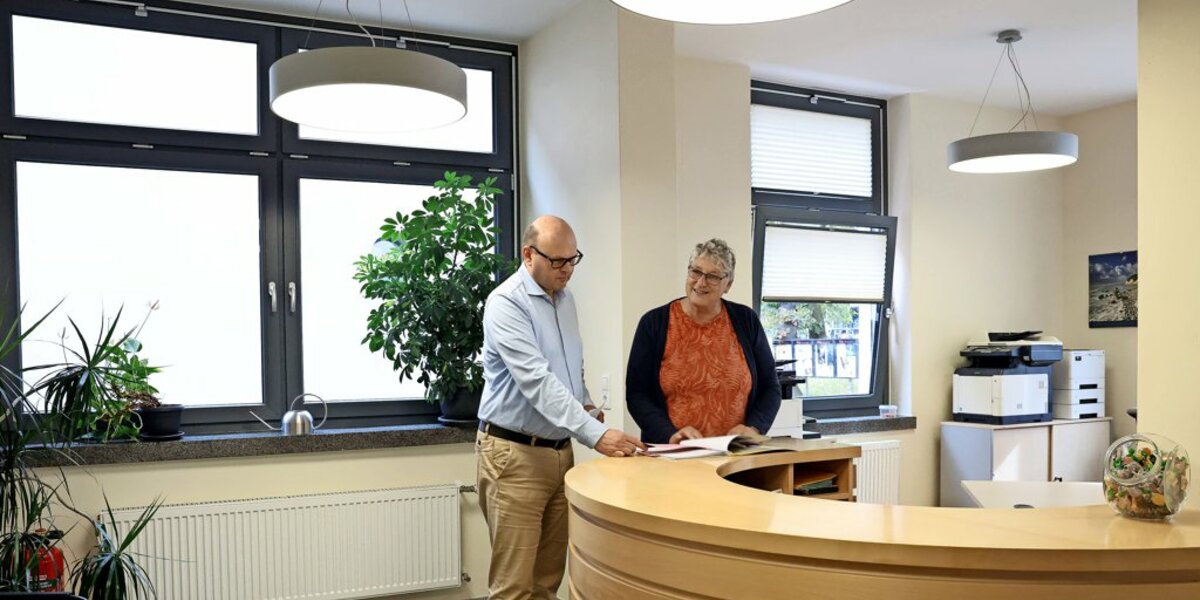 Die Hundedame hat schnell die Herzen der Kollegen und Kolleginnen erobert. Mal liegt sie bei dem einen Mitarbeiter im Büro in der Sonne, mal holt sich von einer anderen Kollegin einen Kohlrabi-Snack ab, mal darf sie Joghurtbecher auslecken. Oder sie läuft in den ersten Stock ins Büro von Chef Ernst, um dort ein Nickerchen zu machen. „Er hat extra für sie eine Decke auf den Boden gelegt“, sagt Boßerhoff und schmunzelt. Ja, die Atmosphäre ist ein bisschen anders geworden, seitdem Seli im Sekretariat mit von der Partie ist. „Es ist schon nett, wenn sie hier herumläuft und jeden begrüßt“, sagt Rusack.