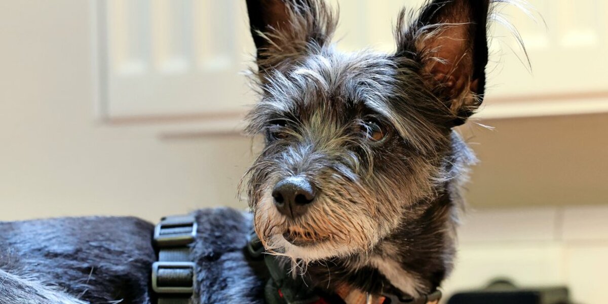 Ein Terrier-Mix am Empfang