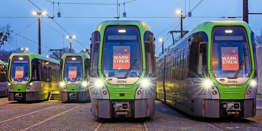 Hannover - Die Dienstleistungsgewerkschaft Verdi kündigt einen Warnstreik im öffentlichen Nahverkehr an: Am Dienstag, 11. Februar, sollen die Beschäftigten der Üstra die Arbeit ganztägig niederlegen. Damit bleiben alle Stadtbahnen und Busse von Betriebsbeginn, 3 Uhr, bis Betriebsende am frühen Mittwochmorgen, 3 Uhr, im Depot. Betroffen ist auch das Personal von Üstra-Reisen. Fahrgäste müssen auf alternative Verkehrsmittel wie S-Bahnen oder Regiobus ausweichen. Denn: „Es wird keinen Notfallfahrplan geben“, sagt Üstra-Sprecher Heiko Rehberg.