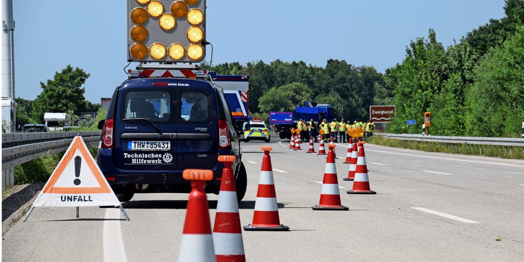 Kreis Hildesheim - Die für die Sanierung gesperrte Nordfahrbahn der A 7 im Bereich von Hildesheim ist am Sonnabend von rund 20 ehrenamtlichen Helferinnen und Helfer des Technischen Hilfswerkes (THW) für eine Übung genutzt worden. Mit der Unterstützung von Beamten der Autobahnpolizei Hildesheim probten die Teilnehmer das richtige Vorgehen bei Einsätzen auf Bundesautobahnen. Der Verkehr auf der Autobahn ist durch diese Aktion nicht beeinträchtigt worden.