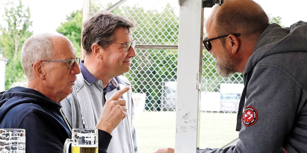 VfR-Vorsitzender Reinhardt Garms kommt zum Getränkewagen und bestellt ein Pils. Ich lehne mich lässig auf die Theke – mal ein bisschen mit dem Germanen-Boss schnacken. Das erste Spiel gegen den SV Einum haben seine Ochtersumer noch gewonnen, durch die Niederlage gegen Borsum ist aber klar, dass sie als Gastgeber früh aus dem Wettbewerb ausscheiden. Das passt Garms nicht wirklich in den Kram. Aber es gibt Wichtigeres.