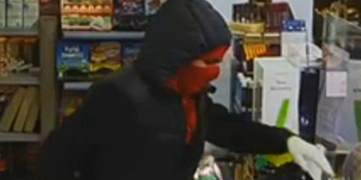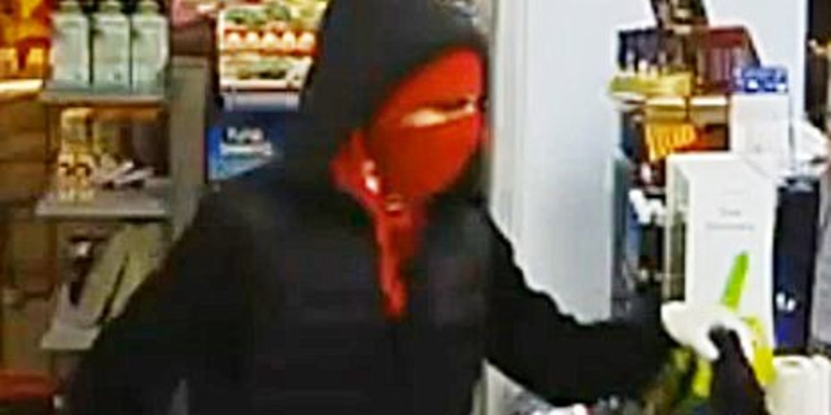 Der Mann betrat den Kiosk am 5. Februar gegen 20.25 Uhr und erbeutete Geld und Zigaretten – dabei bedrohte er eine Verkäuferin mit einem langen Messer, ehe er mit der Beute floh. Ende Februar veröffentlichten die Ermittlungsbehörden Videoaufnahmen und erste Bilder des Räubers. Nun zeigen sie erneut Fotos, die auch das vermummte Gesicht des Mannes von Nahem zeigen – einzig die Augen sind zu erkennen, der Rest des Gesichts ist von einer roten Maskierung und einer schwarzen Kapuze verborgen. Zudem trug der Mann ein rotes Halstuch und einen weißen Handschuh über der linken Hand. Die Behörden schätzen, dass er – entgegen früherer Vermutungen – jünger als 25 Jahre alt sein könnte und hoffen nun auf weitere Hinweise aus der Bevölkerung, die ihnen bei den Ermittlungen helfen.