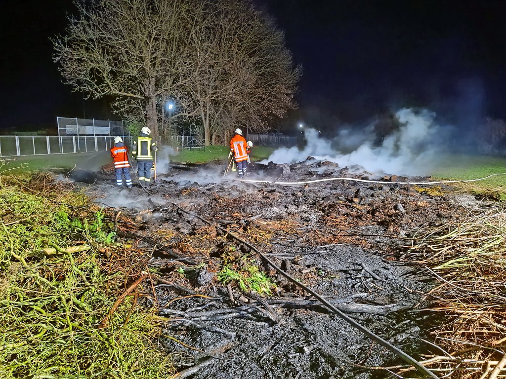 Das Osterfeuer ist vollständig abgebrannt. Ursprünglich war das für Samstagabend vorgesehen. Die Polizei bittet Zeugen, die Hinweise geben können, sich beim Polizeikommissariat Elze unter 05068/93380 zu melden.