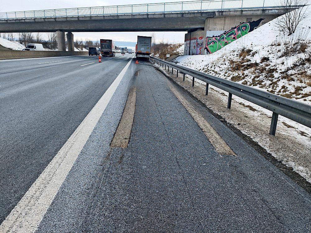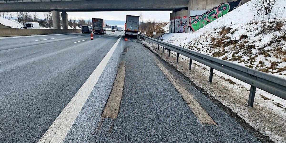 Wie berichtet, spielte sich der Vorfall am Dienstag auf der Autobahn nahe Bockenem ab. Gegen 12 Uhr war ein 51-jähriger Fahrer eines Sattelzugs aus Gießen in Richtung Norden unterwegs, als er zwischen Rhüden und Bockenem bemerkte, wie sich die Stützen an dem Auflieger in voller Fahrt ausfuhren – den bisherigen Erkenntnissen der Polizei zufolge mutmaßlich wegen eines technischen Defekts. Der Fahrer lenkte den Sattelzug geistesgegenwärtig auf den Standstreifen, erst hier setzten die Stützen schließlich auf dem Asphalt auf und rissen ihn auf einer Länge von mehreren Metern auf. „Die Risse sind schon so etwa fünf Zentimeter tief“, verdeutlicht Eisebitt.