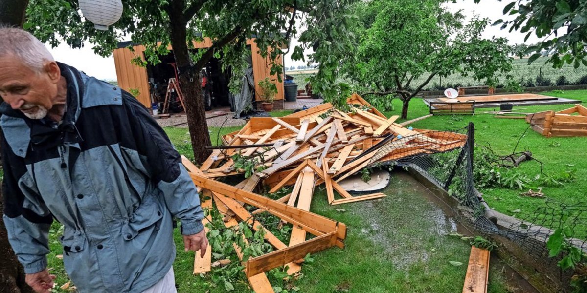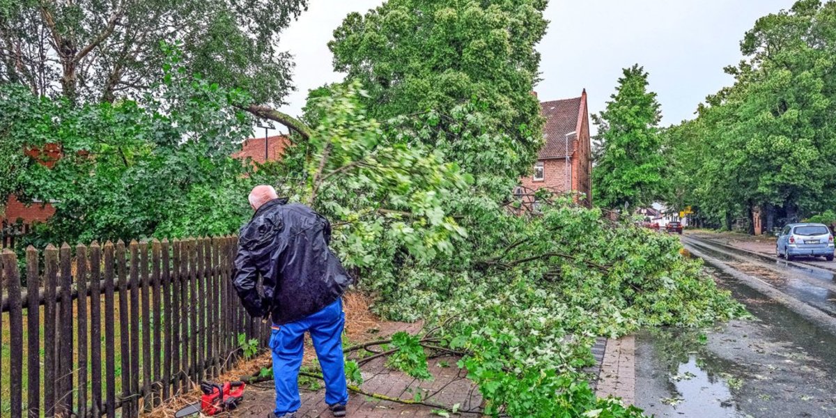 Und dann schlug der Sturm zu. „Unser Gartenhäuschen flog komplett auseinander und landete im Garten der Nachbarn“, so Schnittger. Zudem sei in der Nähe durch den Wind ein Auto angehoben worden – und dann in einen Graben gerutscht. Doch die Autofahrerin blieb unversehrt. Ein Feuerwehrmann, der in einem Haus nebenan wohnt, habe sich um die Autofahrerin gekümmert, fügte Schnittger hinzu. Zudem seien in der Heerstraße Häuser zum Teil abgedeckt worden.