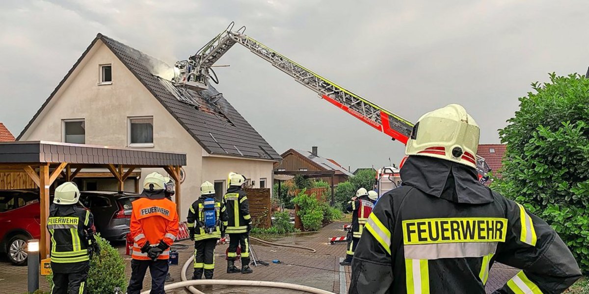 In Lühnde fing ein Dachstuhl Feuer, der Blitz war in das Haus eingeschlagen. Nachbarn hatten den Blitzeinschlag beobachtet. Die Hilfsbereitschaft vor Ort war und ist groß: Die komplette Nachbarschaft der betroffenen Familie bot Hilfe und Schlafplätze an. Der Brand war laut Zeugen bis in den sehr späten Abend nicht vollständig gelöscht.