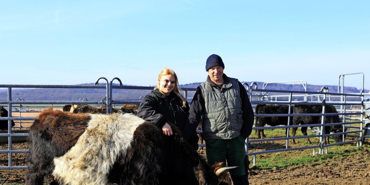 Barienrode/Söhre - Majestätisch hebt das massige Tier seinen schwarzen Kopf, als es Bewegung am Weidezaun wahrnimmt. Die Hörner sind imposant. Nach außen gebogen sind sie und mächtig. Günther heißt die Trägerin des Gehörns. Die Kuh mit dem ungewöhnlichen Namen ist ein Auerochse und gehört dem Biobauern Michael Volm aus Söhre. Der ist gerade mit seiner Freundin Rayana Keil zur Weide am Ortsrand von Barienrode gefahren. Im Kofferraum haben sie ganze Brotlaibe, die werden sie gleich an die Herde verteilen. Doch zunächst steht Volm am Weidezaun, die Hände tief in den Taschen vergraben, die blaue Wollmütze bis über die Augenbrauen ins Gesicht gezogen und schaut zu seinen Tieren.