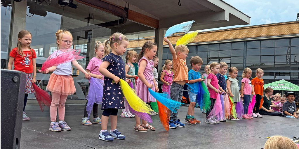 Eine Gruppe der Tanzschule Schuppmann bringt mit bunten Tüchern Schwung auf die Bühne du begeistert nicht nur Trainerin Jessica Schuppmann, sondern auch die Zuschauer. Foto: Stephanie Marschall
