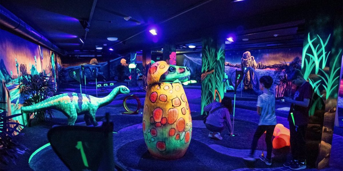Der setzt zudem nach Angaben des Freizeitparks auf die einzige deutsche Indoor-Wildwasserbahn sowie Schwarzlicht-Anlagen für Minigolf und Minibowling. Ebenfalls eine Attraktion für Familien, die im Schummerlicht und umgeben von Dino-Dekos an den Wänden ihre Geschicklichkeit auf die Probe stellen können.