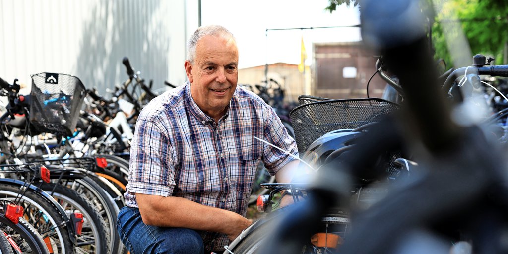 „Es sind allerdings auch viele gute Fahrräder dabei“, sagt Rühmann und zeigt ein beiges Holland-Rad, das wie neu aussieht. Liebhaber haben hier die Chance, auch Vintage-Stücke zu finden. Rühmann’s Liebling ist ein orangefarbenes Vintage-Klapprad. Auch Rennräder gibt es. Ein besonders schönes Modell ist ein weißes Single-Speed, ein Rennrad ohne Gangschaltung. „Ein ehemaliges O-Bike haben wir auch. Sie haben unplattbare Vollgummireifen.“, sagt Rühmann. Das ist eine Kuriosität: Obike ist ein Anbieter von Leihrädern gewesen. Die Firma ist vor einigen Jahren pleite gegangen und hat entsprechend ihre Räder verkauft.