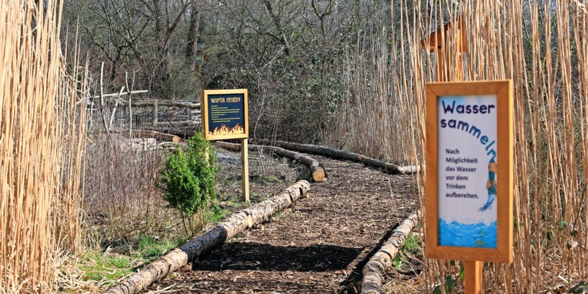 Auf einem bisher nicht genutzten Teil zwischen Bauernhof und Zirkuszelt hat die Familie Deicke nun eine Survival-Ausstellung angelegt, mit Feuerstellen und Unterständen. Eine von drei Neuheiten, die ab dem 2. April auf die Gäste warten wird.