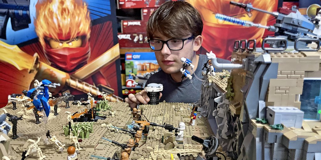 Hoheneggelsen - Mit 10.000 Lego-Steinen hat Tim Günther aus Hoheneggelsen eine riesige Szene aus dem Star Wars-Universum nachgebaut. Zusammen mit seinem Vater Michael – ebenfalls leidenschaftlicher Klötzchenbauer – zeigt er seine Kreation jetzt auf einer angesagten Szeneausstellung.