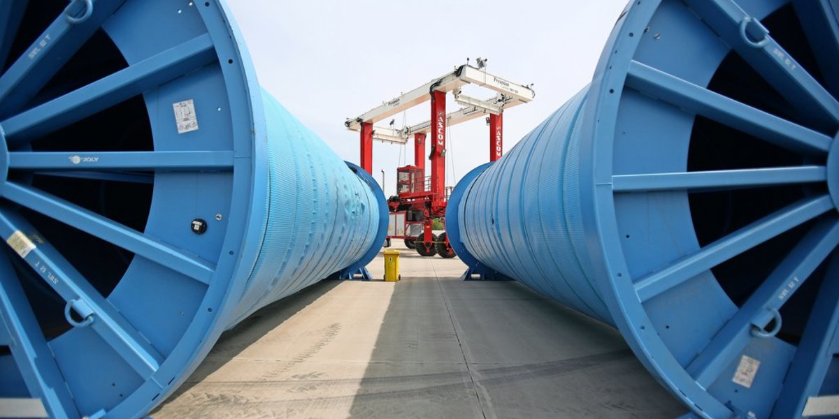 Die einzelnen Trommeln umfassen knapp zwei Kilometer Kabel und sind rund 80 Tonnen schwer. Die Firma Prysmian stellt sie in Montereau südlich von Paris her. Von dort werden sie über die Seine an den Atlantik gebracht – und schippern dabei auch unterhalb des Eiffelturms vorbei, wie ein Firmenvertreter stolz anmerkte. Per Schiff geht es von der französischen Küste aus weiter nach Hamburg und von dort per Schwertransport über die Autobahn 7 nach Hildesheim.