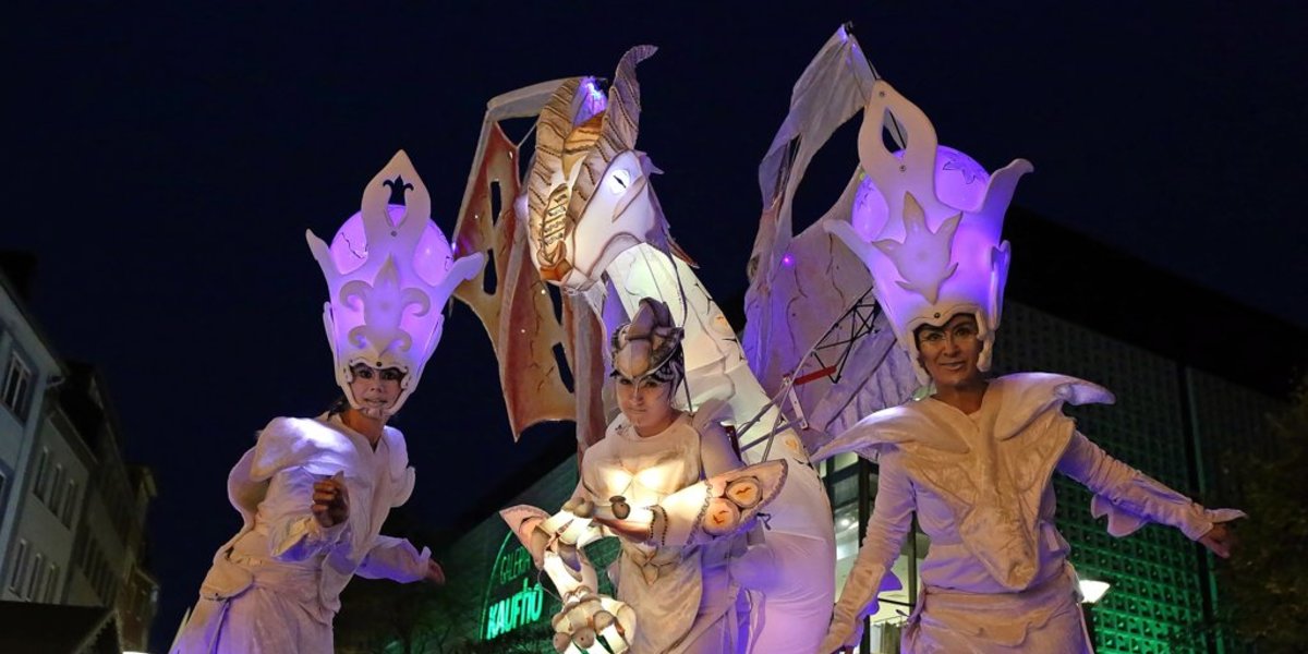 In der Bernwardstraße steht außerdem ein acht Meter hoher illuminierter Kletterturm, den man erklimmen kann. Überall sind außerdem Lichtgestalten von Ars Saltandi und vom Theater Hochkant unterwegs.